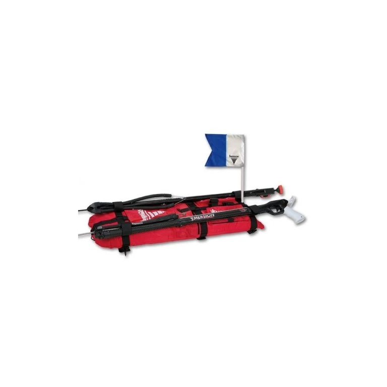 Pavillon alpha de 30 cm x 30 cm fixé sur l’arrière du flotteur et pavillon rouge avec diagonale blanche.
